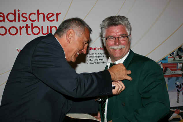 | Die Ehrung nahm der Präsident des Badischen Sportbundes Heinz Janalik in der Sportschule Schöneck vor. |
