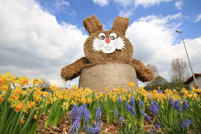 Osterhasendorf, der sich auf dem Donebacher Festplatz einfügte als sei