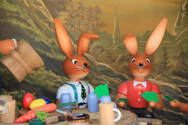 dieses Osterhasendorf noch durch Szenerien in Puppenstubengröße, echte