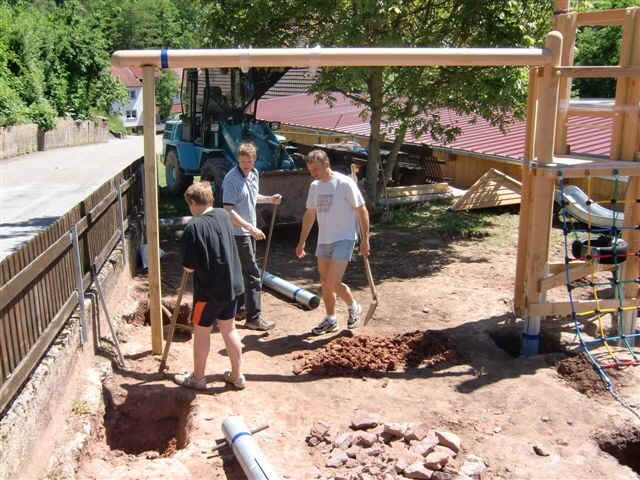 | Die Arbeiten am Kinderspielplatz in Ünglert sind in vollem Gange. Die Dorfgemeinschaft Ünglert mit ihrem Vorsitzenden Hubert Kugler bauen die Spielgeräte in ehrenamtlicher Arbeit ein. Der Kinderspielplatz soll dann am 21./22. August 2010 im Rahmen der Feierlichkeiten zum 20 jährigen Bestehen der Dorfgemeinschaft Ünglert feierlich eingeweiht uns seiner Bestimmung übergeben werden. Die nachfolgenden Bilder zeigen die Arbeiten der Dorfgemeinschaft Ünglert. |