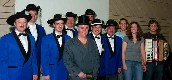 | Feierlich zelebrierte Norbert Schnetz in Doppelfunktion als Ortsscheller und Dumbocher Oberturmspatz das Motto der Fastnachtskampagne 2008/09: „Ob Badenser oder Bayern, Turmspatze duns 22-jährige feiern“. Schon traditionell nutzte der Siebenerrat der Turmspatzen, genauer Norbert Schnetz, Gernot Brenneis, Norbert Nesnidal, Siegfried Walz, Hubert Halli, Manfred Schölch, Rudi Rechner, Michael Indra und Sebastian Repp, die „Wetten dass?“-Veranstaltung im Rahmen der Donebacher Kerwe, um im voll besetzten Spatzennest so richtig von Null auf zweihundert durchzustarten. Und im Jubiläumsjahr haben sie natürlich noch einen Grund mehr, die Kampagne etwas früher zu beginnen und in vollen Zügen zu genießen. Und passend zum Jubiläumsmotto hatte man ganz offensichtlich das Prinzenpaar gewählt. Denn Seine Tollität, Prinz Martin I. (Repp) gilt zwar als Stammspieler des FCD, stammt aber aus dem Bayrischen Preunschen. Und Ihre Lieblichkeit, Prinzessin Regina I. (Fertig) ist ein echt Badisches Mädel aus Donebach, die sich aufgrund ihrer Erfahrungen als Animateurin auf dem Kreuzfahrtschiff „AIDA“ und als Angestellte des Fürstenhauses bestens für diesen verantwortungsvollen Saisonjob auf „Regierungsebene“ eignet. Drum Ihr Dumbocher passt gut uff,.mir Spatze sen widder super druff. Ä Prunksitzung richte mor a widder aus, in unserm schöne Spatzehaus. Ab heut is doch hoffentlich allene klar, es feiert die ganze Spatzeschar. Doch ich seh Ihr werd alle immer blasser, ich gleb mir trinke mol ä Spatzewasser. |
