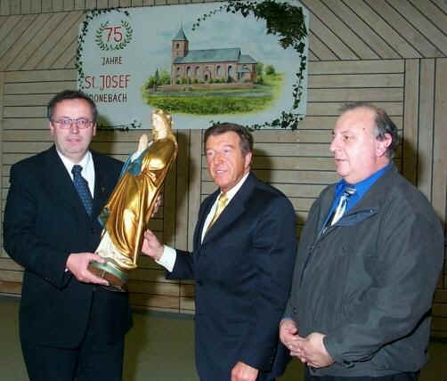 Hefner überreicht an Pfarrer Rapp die Madonna, die von Hauptlehrer