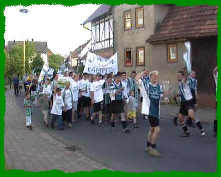 | Bild:F.Brenneis Engelbert Schnetz hat heute am 30. August 2002 seinen persönlichen Ehrentag. Er kann bei guter Gesundheit seinen 80. Geburtstag feiern. Engelbert Schnetz gehört zu den besonders treuen Fans des FC- Donebach. Kein Heimspiel dürfte er versäumt haben. Alle Einwohner von Donebach und Ünglert gratulieren zum Geburtstag herzlich und wünschen weiterhin Gesundheit und alles Gute. |
