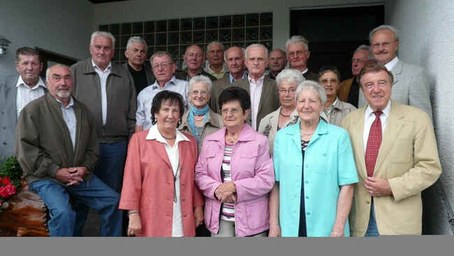 Bei der Ankunft im liebevoll dekorierten Sportheim fanden die Angehörigen der Jahrgänge 1936/1937/1938 eine kleine Schiefertafel an jedem Platz – Erinnerung an eine Schulzeit, die im Krieg begonnen hat und bei der die Schiefertafel samt Griffel das wichtigste Schulutensil war, abgesehen von wenigen abgegriffenen Schulbüchern. Doch nicht die Not und der Mangel in dieser Zeit, sondern die gemeinsame Besinnung auf schöne Kinder- und Jugendzeiten stand im Mittelpunkt des Klassentreffens, das von Armella Hilbert, Elfriede Nesnidal und Norbert Hefner vorbildlich organisiert worden war. Immerhin 22 von 29 eingeladenen Schulkameradinnen und Schulkameraden, teils mit Partnern, trafen sich dazu am Samstagnachmittag in Donebach. „Ihr braucht keine Angst zu haben, eine Arbeit schreiben wir heute nicht“, erklärte Armella Hilbert im Hinblick auf die Schiefertafel und ähnlich locker und humorvoll verlief dann auch das ganze Klassentreffen. Natürlich gab es auch ernste Momente: bei den Gräberbesuchern in Donebach und Mudau beispielsweise, bei denen man den verstorbenen Klassenkameraden gedachte und einen Blumengruß niederlegte. Der Samstagabend aber war der frohen Erinnerung vorbehalten, nicht zuletzt dank der Einlagen von Armella Hilbert. Ortsvorsteher Franz Brenneis spannte mit seinem Bildervortrag dann auch den Bogen in die Gegenwart und dokumentierte damit die Entwicklung des Odenwalddorfes von den Nachkriegsjahren bis heute. Vor allem die Bilder von dem im Frühjahr erstmals mit großem Erfolg durchgeführten „Ostermarkt“ sorgten für viel Bewunderung. Auch Norbert Hefner, Mitschüler und Sohn des damaligen Lehrers Josef Hefner, hatte Bilder mitgebracht, die für viel Gesprächsstoff sorgten. Der Sonntag begann mit einem gemeinsamen Gottesdienstbesuch, dessen Programm und Liedauswahl auf das Klassentreffen abgestimmt war. Norbert Hefner fand am Ende die richtigen Worte für die stimmungsvolle Messe, die er im Namen seiner Schulkameraden bewusst als Dankgottesdienst bezeichnete. Ein Spaziergang an den eigens geschmückten „Marienstein“ mit Gebet und Gesang schloss sich an, bevor man sich zum Mittagessen im Mudauer Gasthaus „Zum Lamm“ traf. Beim Besuch am Grab der ehemaligen Lehrerin Irmgard Rippberger-Gatscha wurde ebenfalls ein Blumengruß niedergelegt, bevor nach Kaffee und Kuchen die Heimreise angetreten wurde. Nicht ohne herzliche Dankesworte an die Organisatoren und das Versprechen, sich bald wieder zu sehen: „So Gott will“.